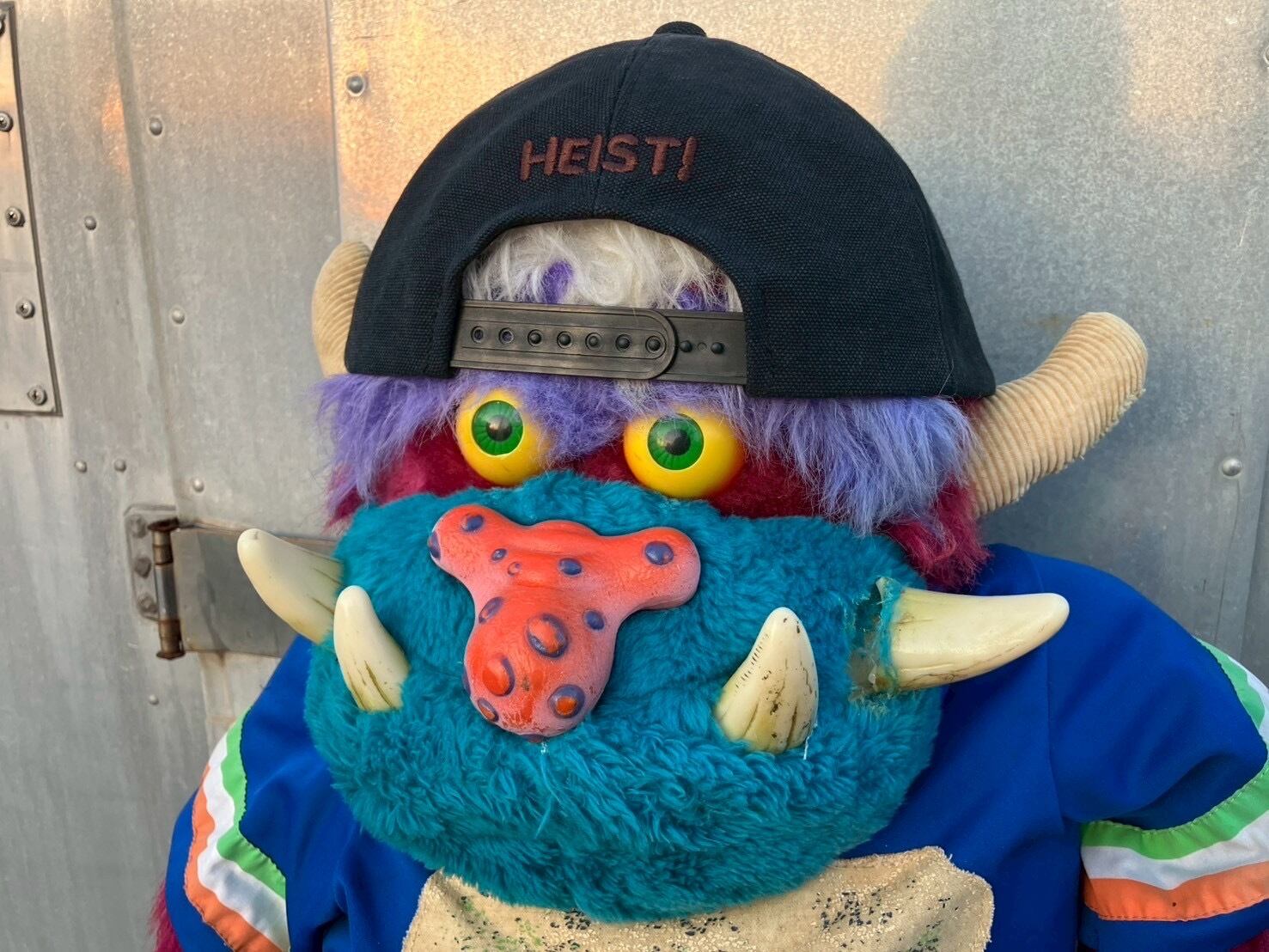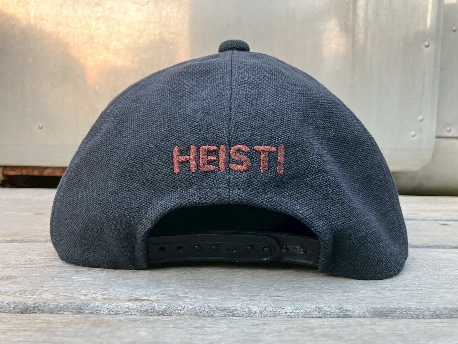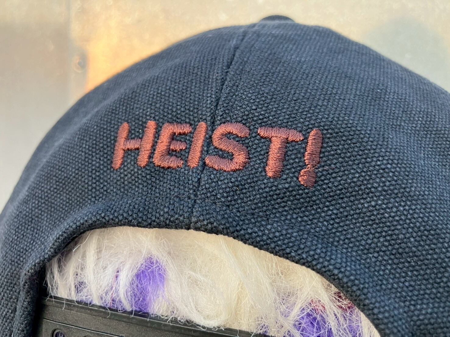 HEIST!(強盗!)と刺繍を施しております。