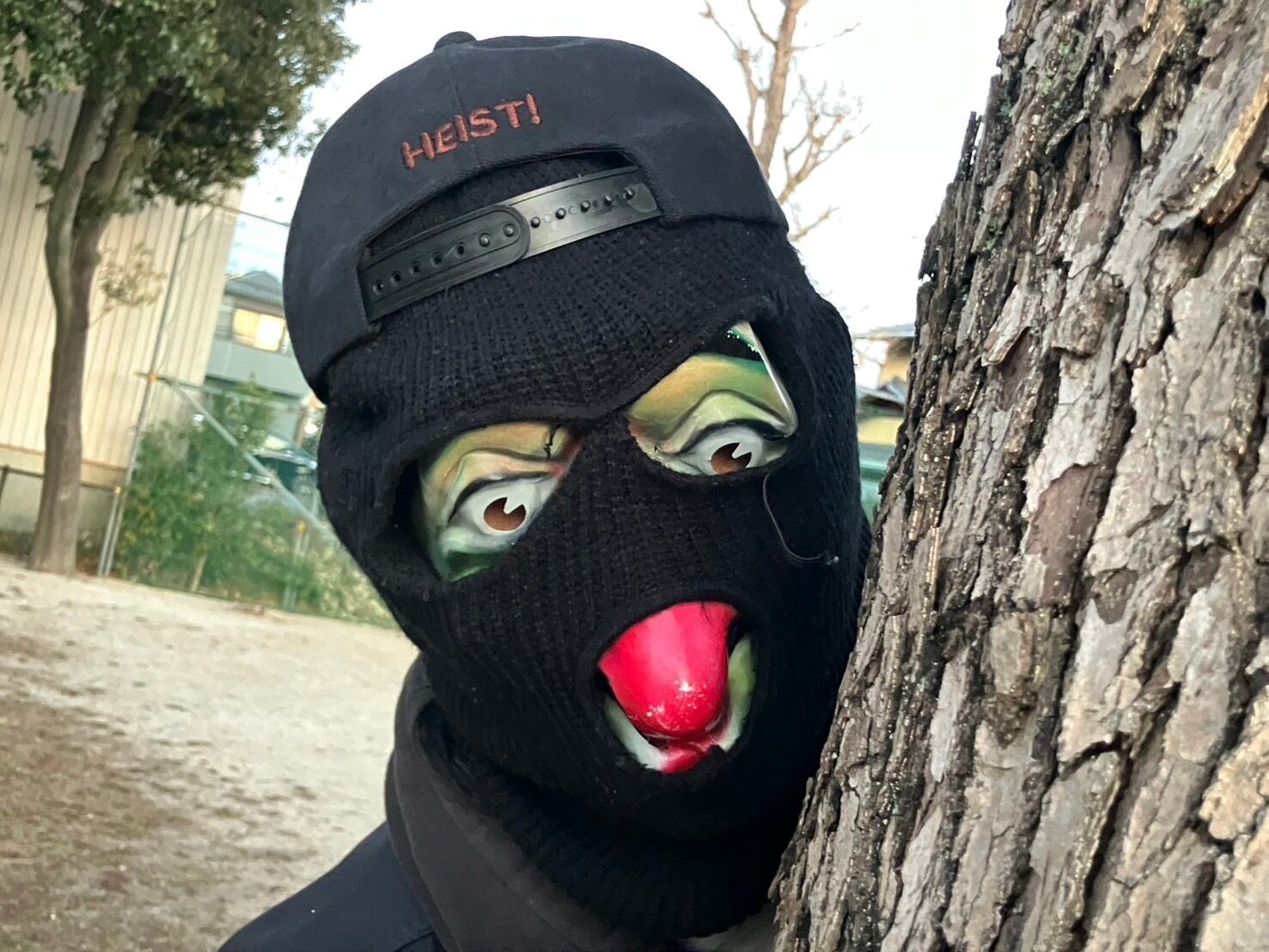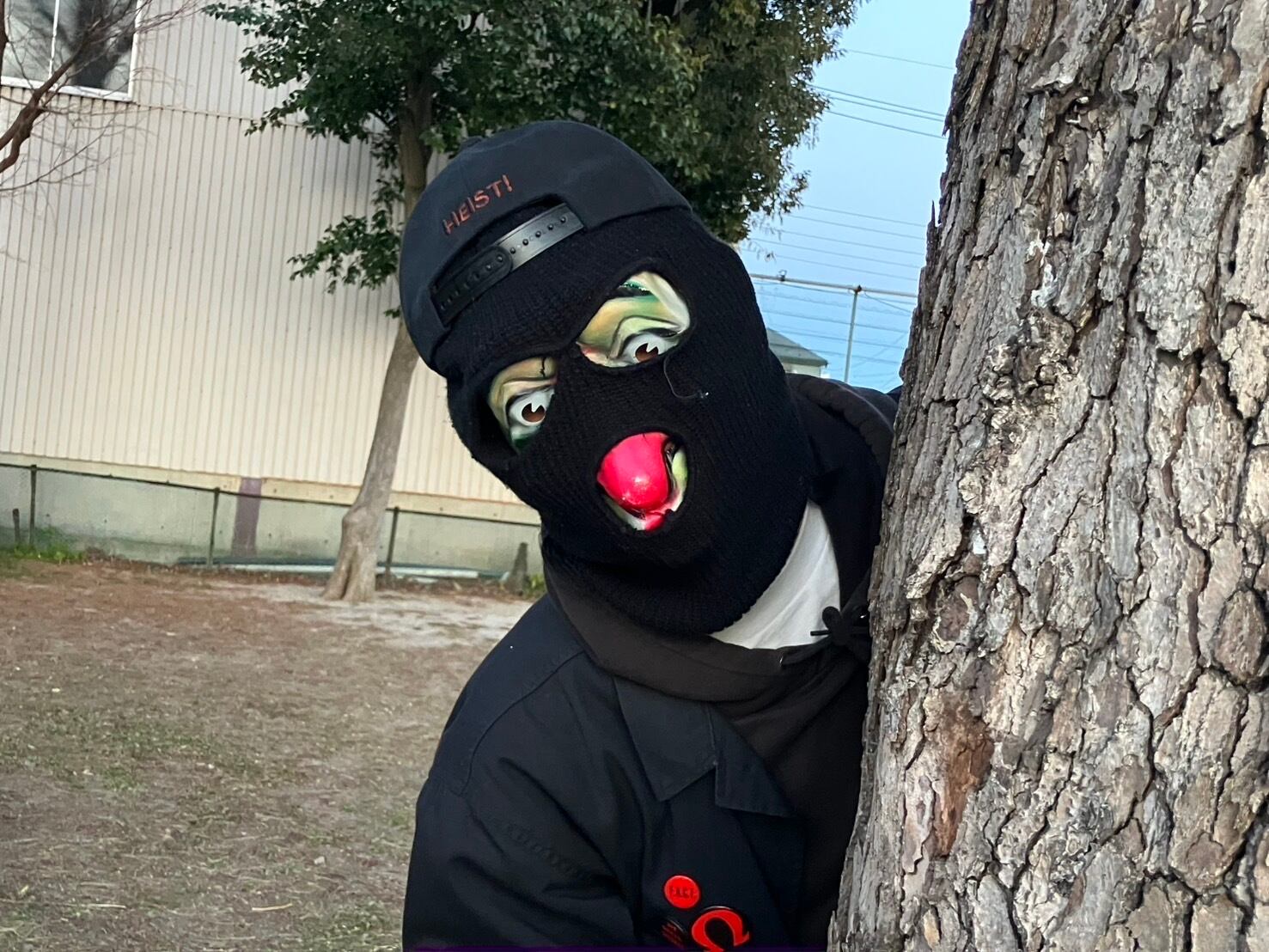 流石に強盗キャップを被るのはかと