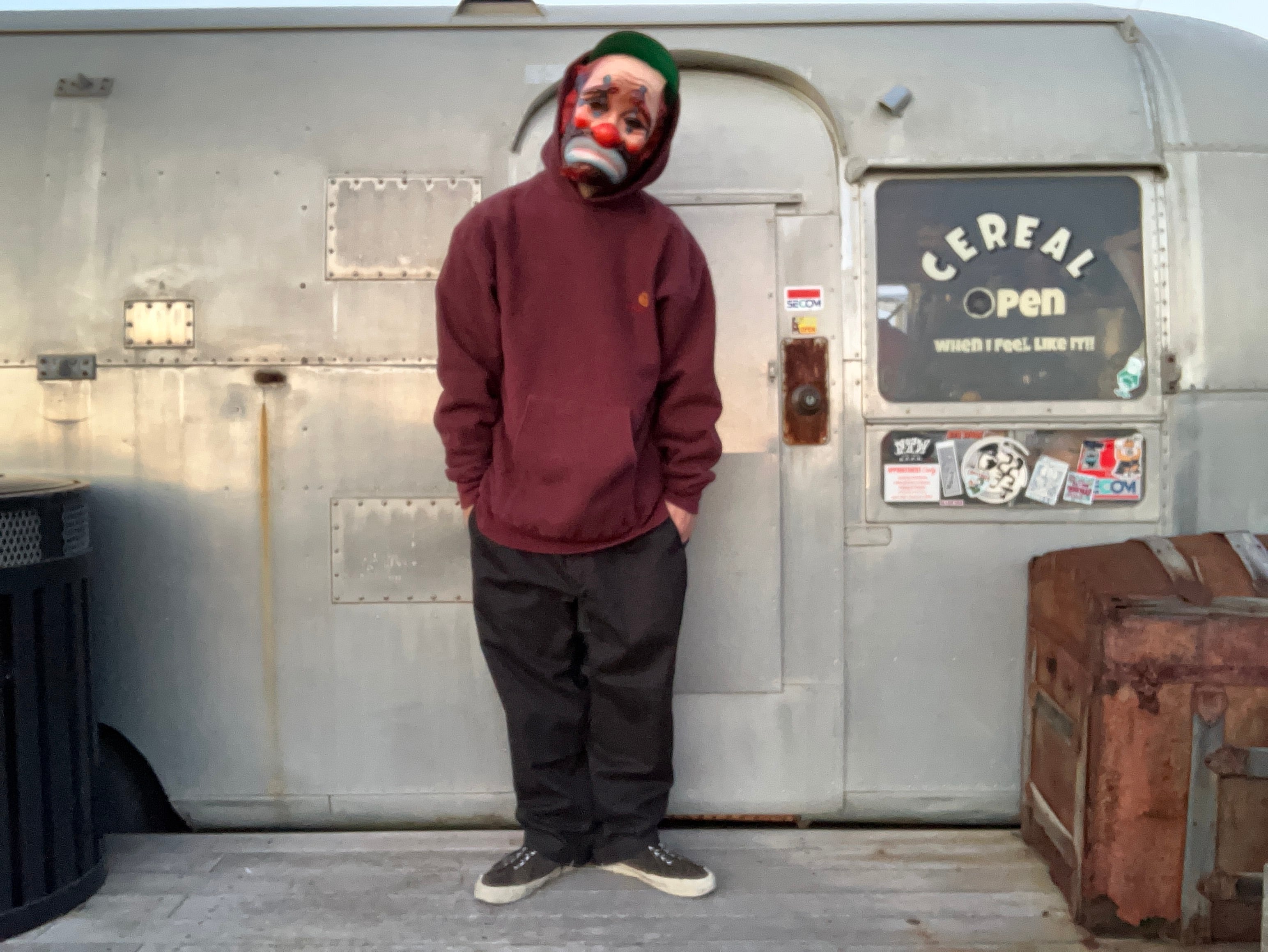 プルオーバーのパーカー珍しいバーガンディーでございます。